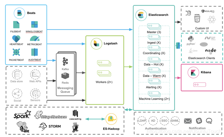 下面是 Elastic Stack 用于日志场景的典 型架构图