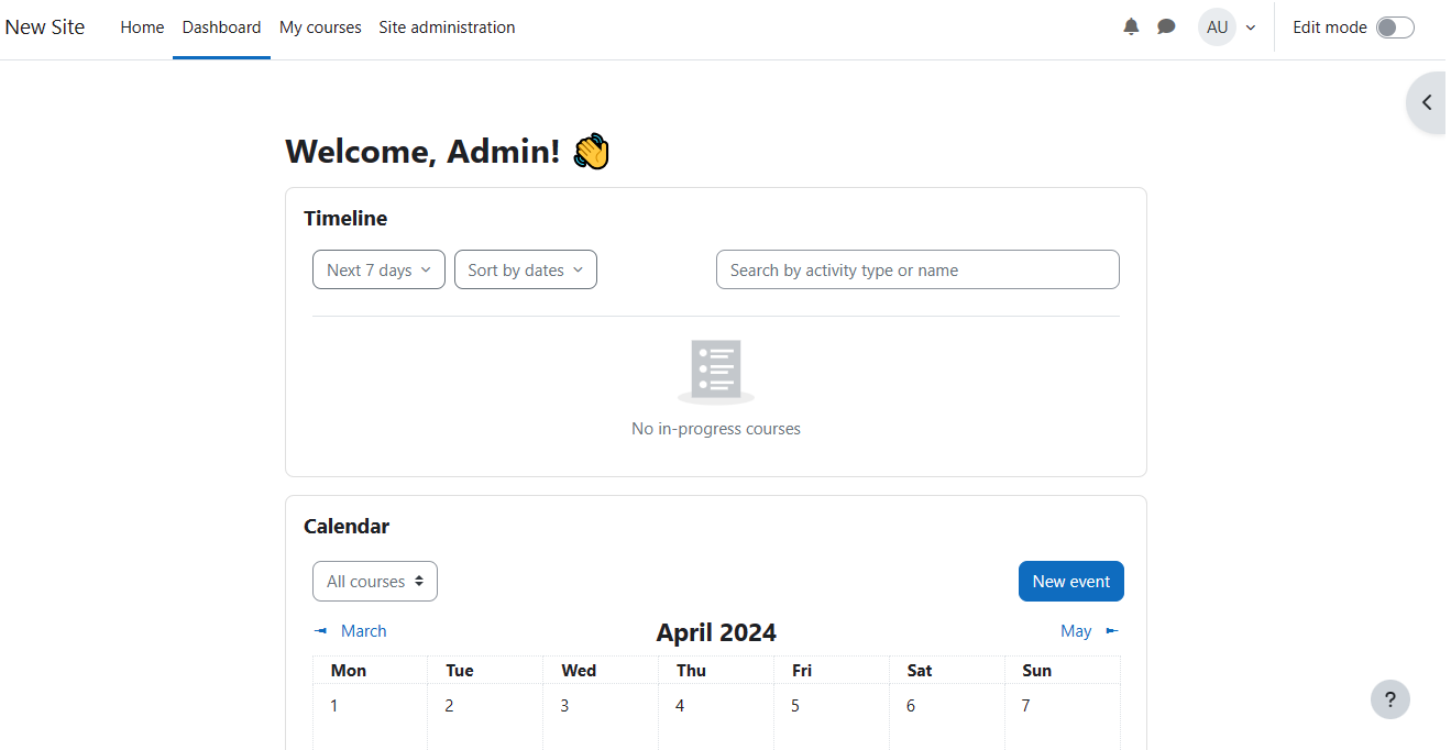 - 登录到 Moodle 管理界面,打开 Site administration