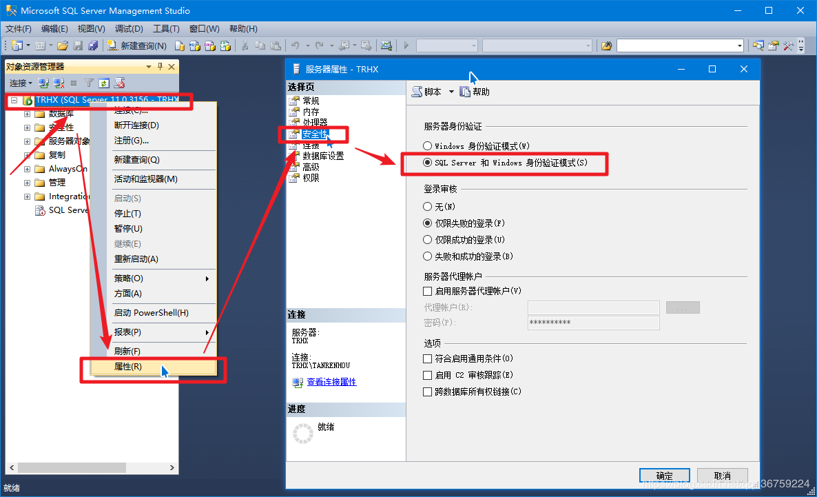 Windows 下的 SQL Server 启用 sa 密码的步骤: